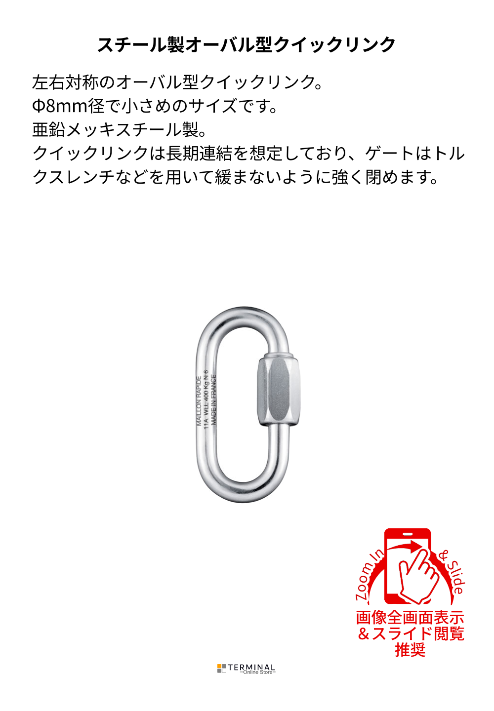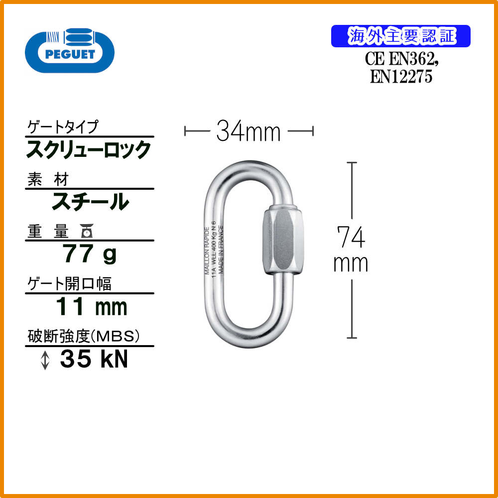 「スモール・オーバル」はゲート幅11mmで、ランヤードやアッセンダーなどの接続に向いています。