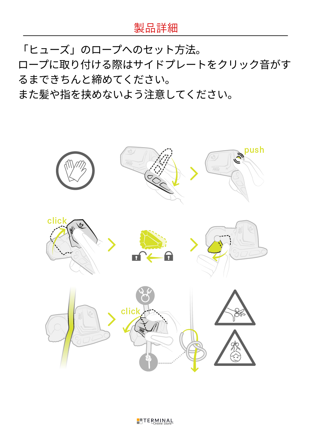 - カラビナから離れることなく、ロープに簡単に着脱できます。