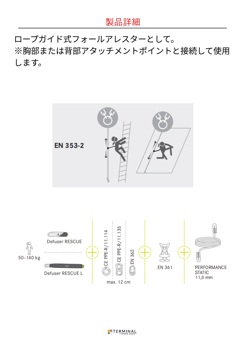 メーカー本国にて日本の墜落制止用器具の規格に準拠したテストを行い、テストをクリアした製品は【国内仕入先を通して墜落制止用器具適合品として販売】しております。シットハーネス(サドル)の場合は特定のチェストハーネスと組み合わせて適合したり、ランヤード(ショックアブソーバー付きランヤード)の場合は特定のコネクター(カラビナ)と組み合わせて適合するモデルもございます。また墜落制止用器具非適合のモデルもございます。適合状況は各商品ページに記載しております。 なお、国内正規品として流通しているもののみが墜落制止用器具に適合しております。同じ製品であっても、個人輸入や並行輸入店経由など非正規のルートで入ってきたものは規格適合を表すタグが付いておらず、非適合品となりますのでご注意ください。 |